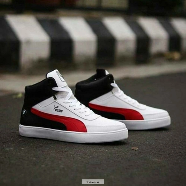 High Ankle trendy shoes Vol 1 Product code - RM-65198 Trendy Sports Shoes for Men. Upper Material: Synthetic. Sole Material: Airmix. Insole: Comfort insole. Closure: Lace-up. Shoe Width: Regular. Pattern: Solid. Toe Style: Closed Toe. Occasion Type: Casual, Running, Sports activity.